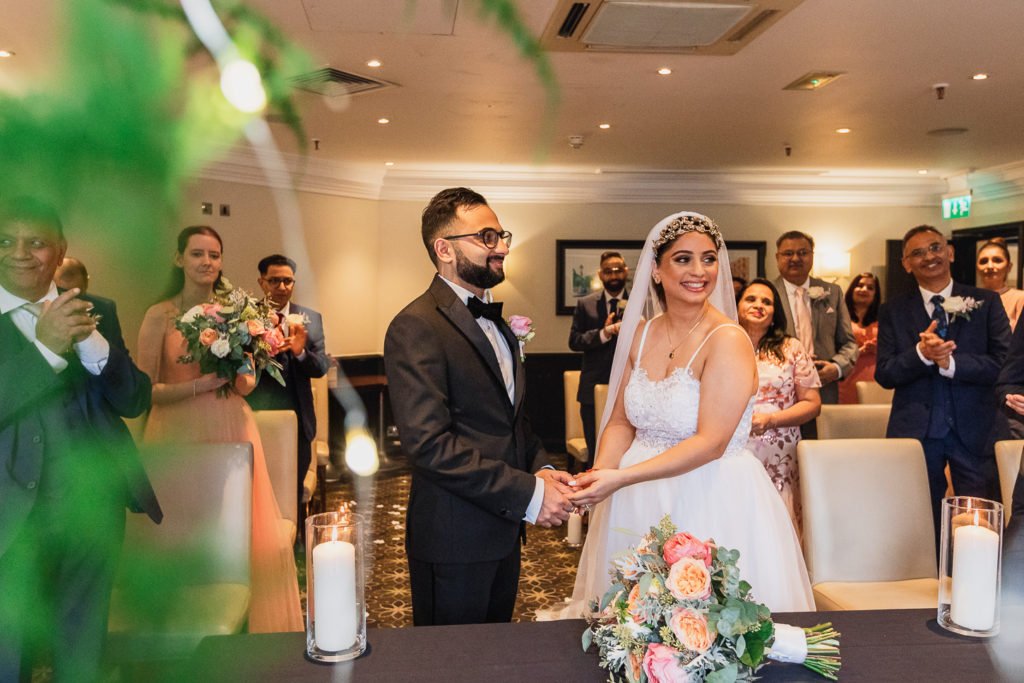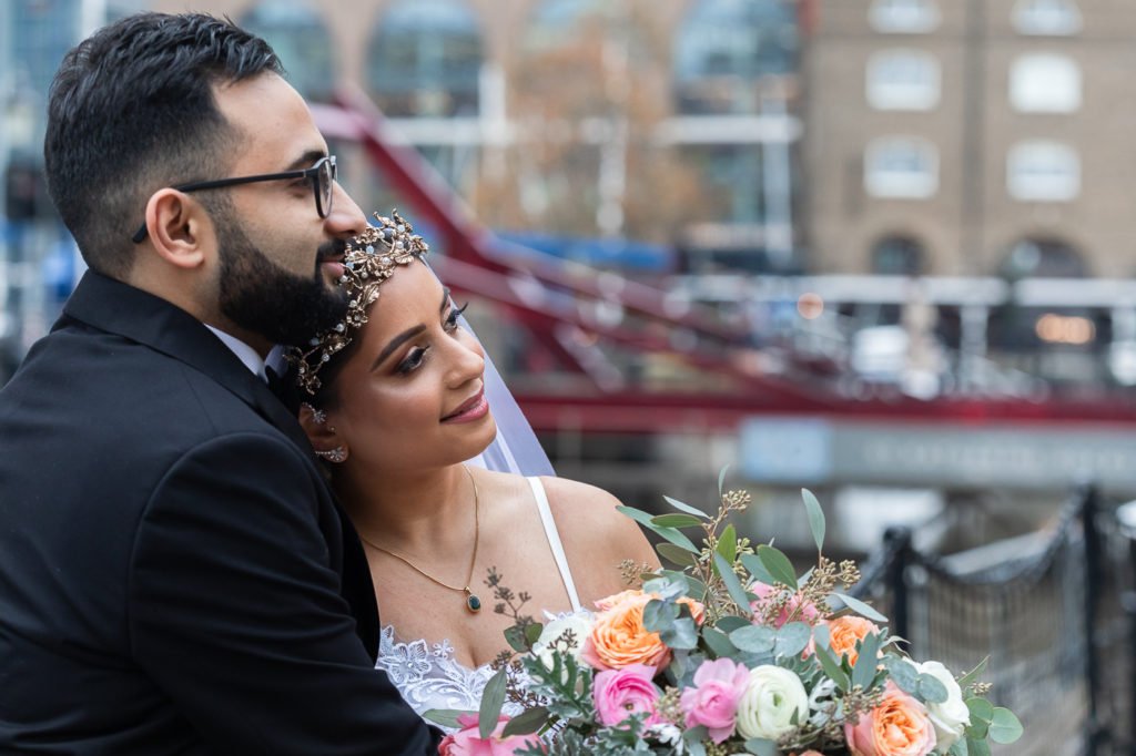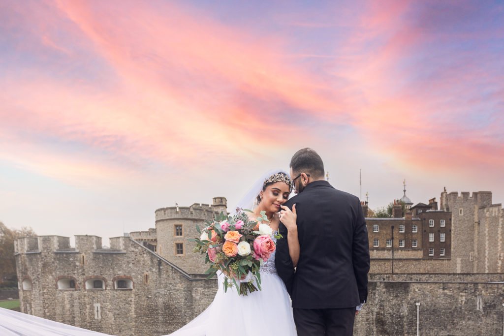 This couple’s civil wedding registry and banquet were held in The Tower Hotel, Tower Bridge in central London. They didn’t do any traditional style Henna or other traditional Indian ceremony, because they will have the traditional ceremonies in India instead.